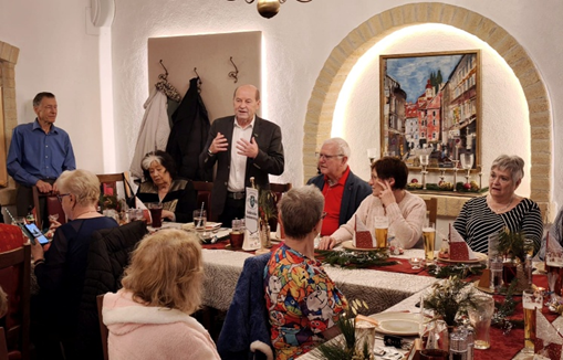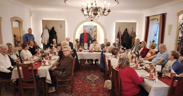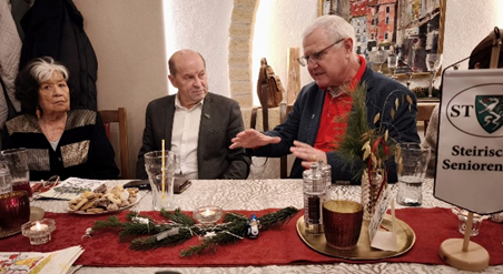 Am Donnerstag, 13.11.2025 fand die Weihnachtsfeier des Steirischen Seniorenring, Stadt Graz-innere Stadt im GH „Lendlplatz‘l“ am Lendplatz statt. Diese war sehr gut besucht und ich danke auch für die Einladung. Neben den Ansprachen von Stadtobmann Helmut Keusch inkl. Weihnachtsgedicht und Kurzansprache von Landesobmann Erich Hafner, welcher sich ausdrücklich beim StObm. für seine ausgezeichnete Arbeit im Sinne aller Senioren bedankte, wurde zur Kulinarik übergegangen. Vorher wurde noch gesungen, eingeleitet von Helga Höller! Nach den Backhendln vom Gasthaus gab es selbstgemachte köstliche Mehlspeisen der Seniorenringmitglieder Frauen – danke! StObm. Keusch beschenkte noch die MG mit einem gefüllten Häferl mit STSR Logo! Danke bei allen Damen und Herren für die großartige Mitarbeit